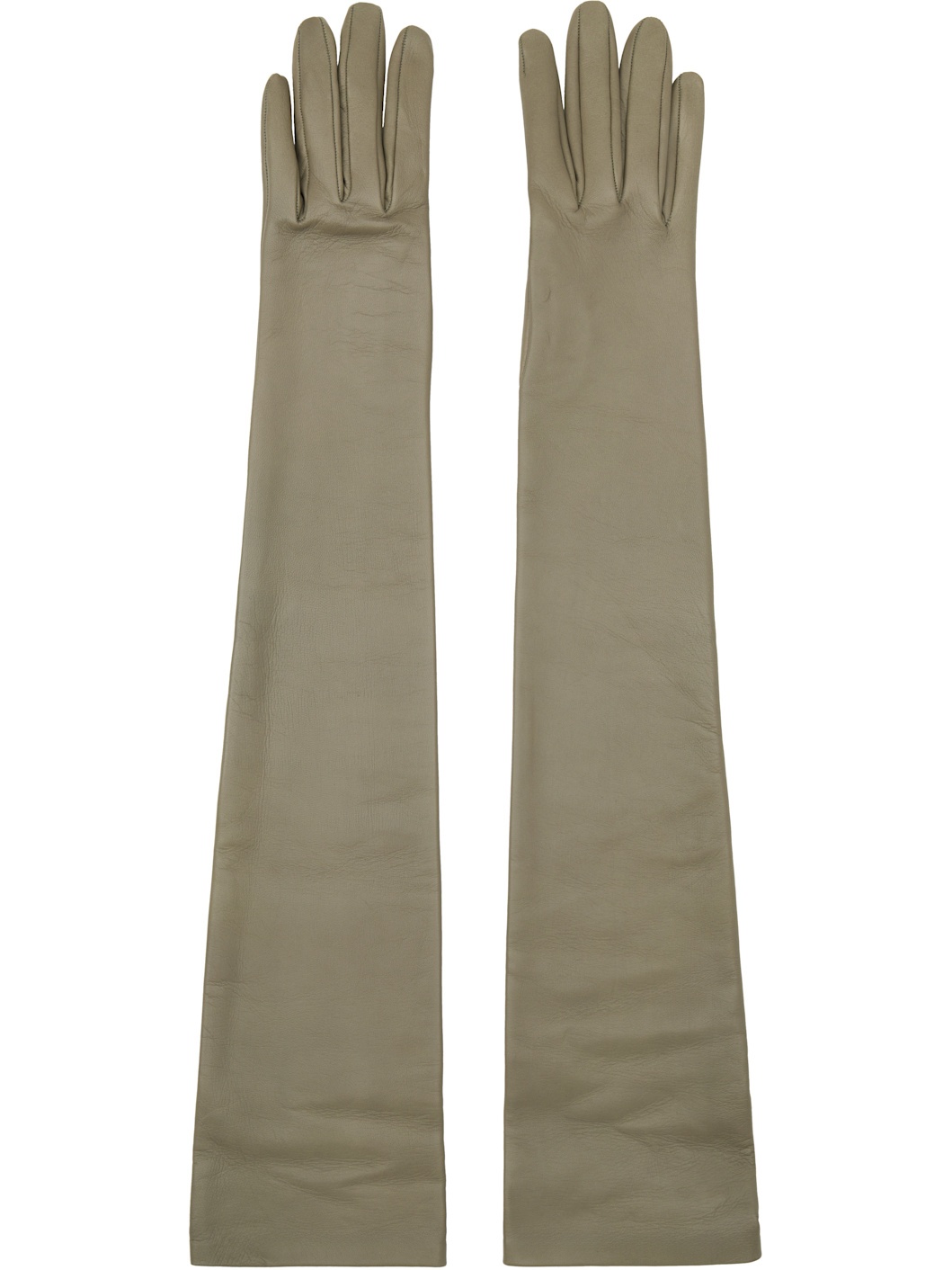 Pair of handcrafted nappa lambskin gloves in gray. Unlined. Supplier color: Salvia Lambskin. Made in Italy 251359F012001