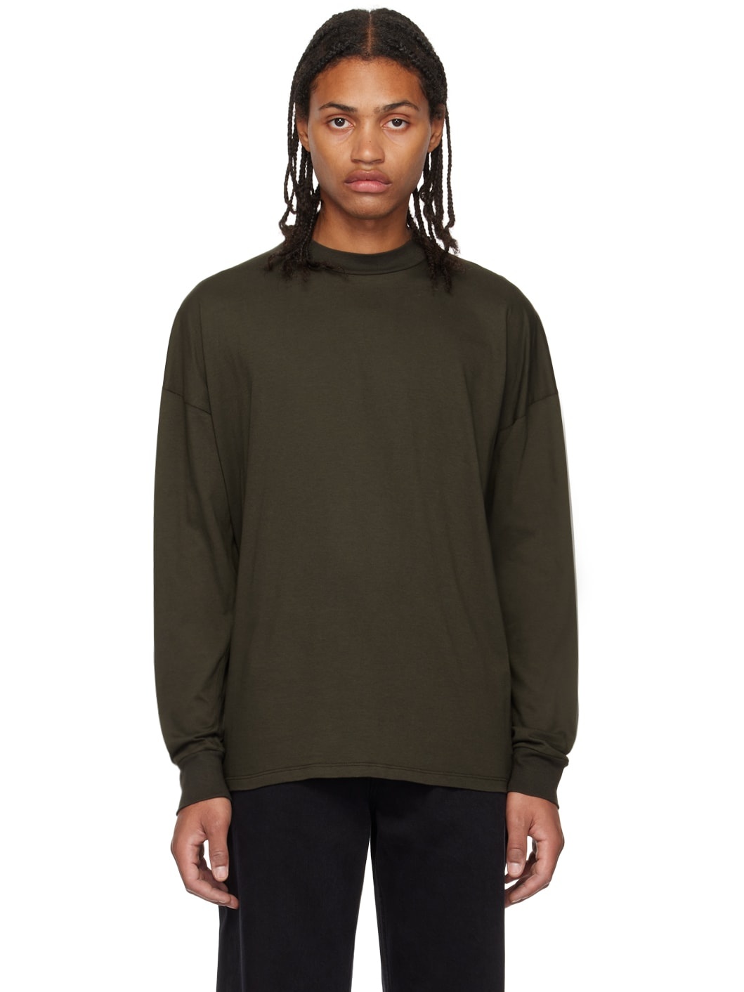 Supima cotton jersey T-shirt. Rib knit mock neck and cuffs. Supplier color: Dovetail 100% cotton. Made in United States 232359M213017