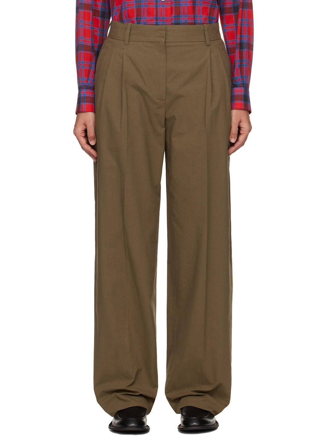 Straight-leg heavyweight cotton poplin trousers. · High-rise · Belt loops · Four-pocket styling · Zip fly · Pleats at front · Creased legs Supplier color: Khaki Body: 100% cotton. Lining: 100% silk. Made in Italy 251359F087018