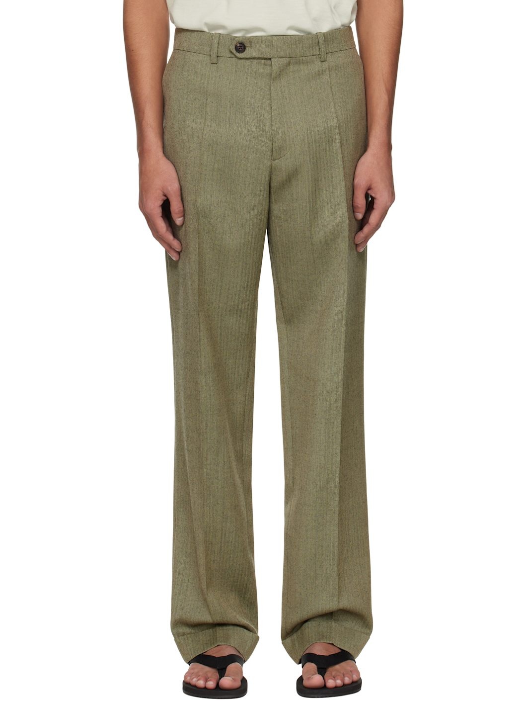 Wool herringbone trousers. - High-rise - Belt loops - Four-pocket styling - Zip fly - Creased legs - Rolled cuffs Supplier color: Black/Pale yellow