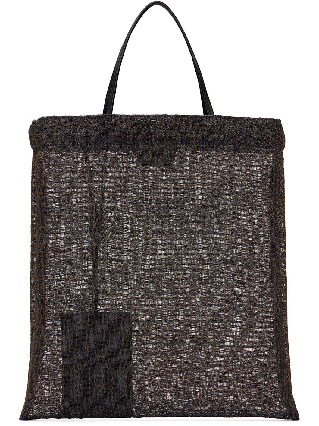 Mesh tote. · Fixed leather carry handles · Detachable logo-embossed card holder at strap · H11.5" x W10" Supplier color: Blue Textile. Made in Italy 252359F049031