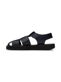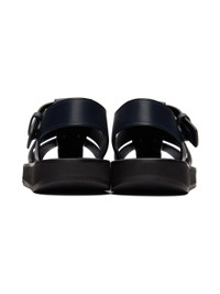 Buffed vegetable-tanned leather sandals in navy. · Concealed adjustable pin-buckle ankle strap · Rubber sole · Gold-tone hardware Supplier color: Icy blue Upper: leather. Sole: rubber. Made in Italy 222359F124031