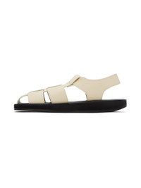 Grained calfskin sandals in off-white. · Criss-crossing straps at vamp · Concealed pin-buckle ankle strap · Logo stamp at buffed leather footbed · Foam rubber midsole · Rubber outsole Supplier color: Ivory Upper: calfskin. Sole: rubber. Made in Italy 232359F124017