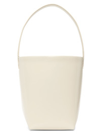 Polished calfskin tote in off-white. · Fixed carry handle · Logo stamp at face · Self-tie fastening at open throat · Suede lining · H9 x W8.5 x D4.5 in Supplier color: Ivory Calfskin. Made in Italy 232359F049034