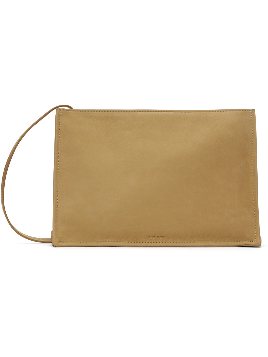 Nubuck shoulder bag in tan. · Fixed crossbody strap · Logo stamp at face · Zip closure · Nubuck lining · H6.5" x W9.5" x D2.25" Supplier color: Mustard Leather. Made in Italy 251359F048039