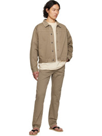 Boxy-fit cotton twill jacket. Subtle fading throughout. - Spread collar - Button closure - Dropped shoulders - Single-button barrel cuffs - Adjustable button tabs at back hem - Logo-engraved copper-tone hardware Supplier color: Taupe