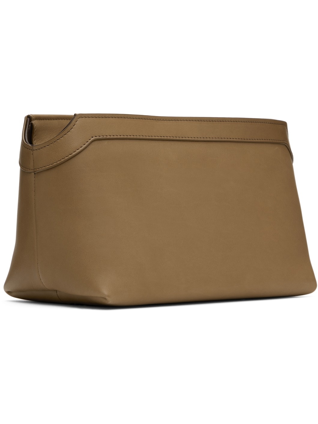 Buffed saddle calfskin pouch in taupe. · Zip pocket at face · Logo embossed at side · Zip closure · Zip and patch pocket at interior · Buffed leather lining · Silver-tone hardware · H5.75" x W8.5" x D5" Supplier color: Mouse grey