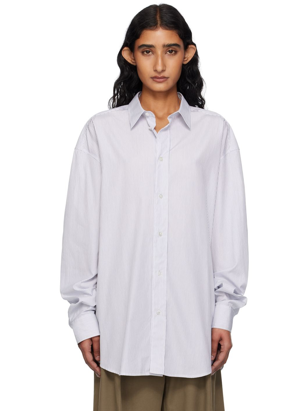Cotton poplin shirt. · Striped throughout · Spread collar · Button closure · Shirttail hem · Pleats at buttoned French cuffs · Twin pleats at back yoke · Mother-of-pearl hardware Supplier color: White/Blue 100% cotton. Made in Italy 252359F109012