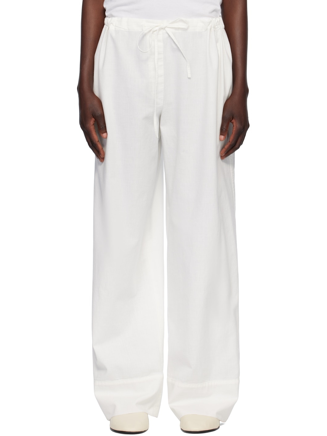 Lightweight cotton voile trousers. · Drawstring at elasticized waistband · Two-pocket styling · Mock fly Supplier color: Off white 100% cotton. Made in Italy 252359F087007