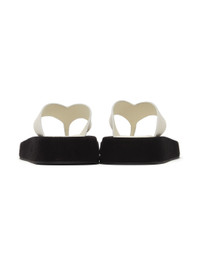 Buffed calfskin slip-on sandals in white. Open square toe. Thong-style strap at vamp. Gold-tone logo stamp at padded leather footbed. Suede covered midsole in black. Rubber outsole in black. Supplier color: Natural/Black Upper: calfskin. Sole: rubber. Made in Italy 212359F124008