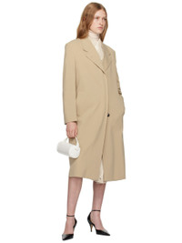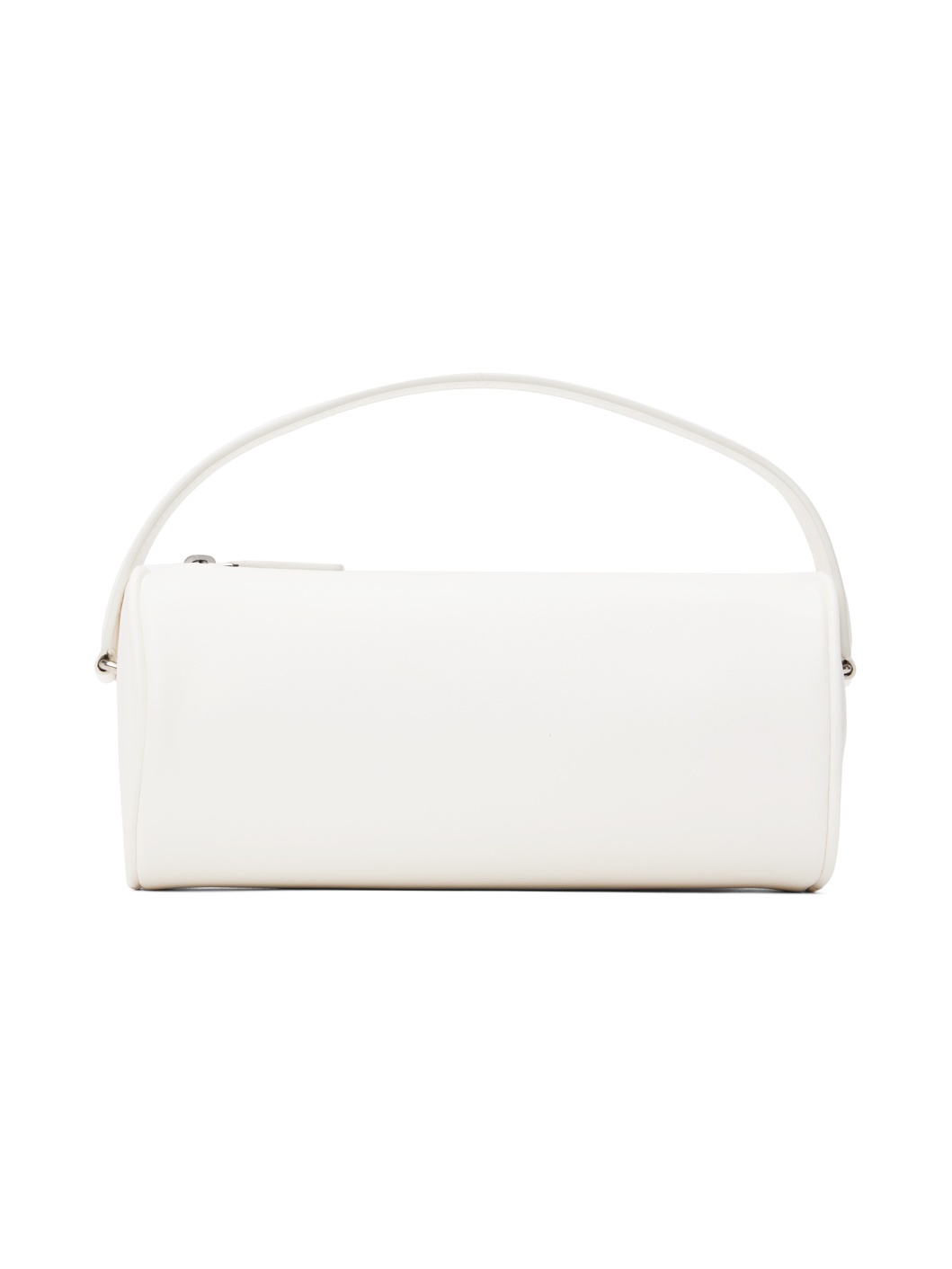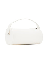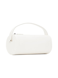 Nappa sheepskin bag in white. · Piping throughout · Fixed carry handle · Logo embossed at side · Zip closure · Leather lining · H3.75" x W7.5" x D3.75" Supplier color: Optic white