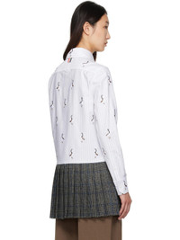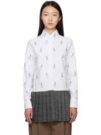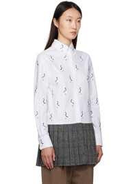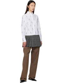 Cotton poplin shirt. · Check and embroidered graphic pattern throughout · Paneled construction with knit wool hem · Spread collar · Button closure · Tricolor loop at back collar · Buttoned barrel cuffs Supplier Color: Grey Body 1: 100% cotton. Body 2: 100% wool. Made in Italy 252381F109005
