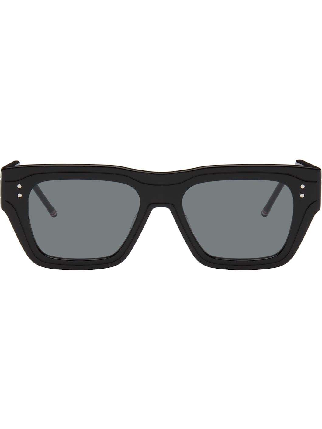 Square acetate-frame sunglasses. · Gray lenses · Integrated nose pads · Stripes at temples · Enameled tricolor stripes at temple tips · Includes case · Size: 52.18 148 Supplier color: Black Acetate. Made in Japan 252381M134001