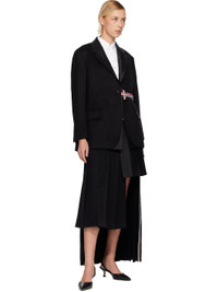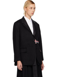 Cashmere melton and wool- and silk-blend twill blazer. · Detachable vest underlay · Notched lapel · Button closure · Welt pocket at chest · Flap pockets at waist · Padded shoulders · Surgeon's cuffs · Tricolor grosgrain flag at back collar · Detachable elasticized strap at back · Twin vents at back hem · Welt pockets at interior · Full satin lining Supplier color: Black Body: 100% cashmere. Trim: 58% wool, 42% silk. Lining: 100% cupro. Made in Italy 252381F057012