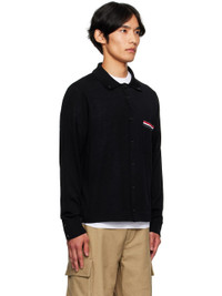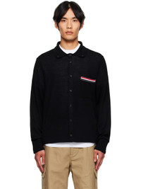 Merino wool jersey shirt. · Rib-knit spread collar and cuffs · Striped patch pocket at chest · Button closure · Tricolor grosgrain flag at back collar Supplier color: Black 100% wool. Made in Italy 252381M192015