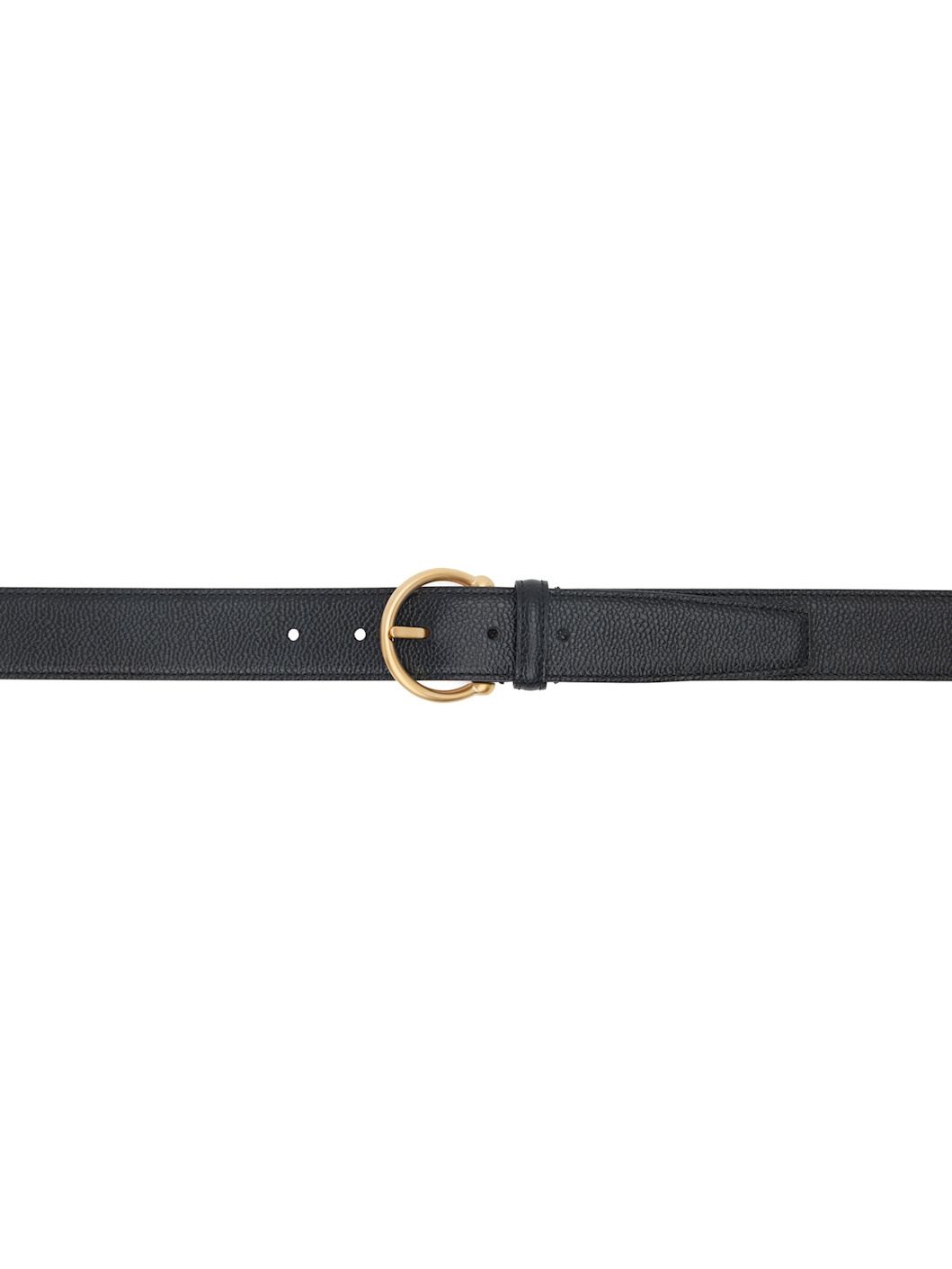 Pebble-grained calfskin belt in black. · Pin-buckle fastening · Gold-tone hardware · W1.5" Supplier color: Black Calfskin. Made in Italy 252381M131003