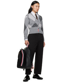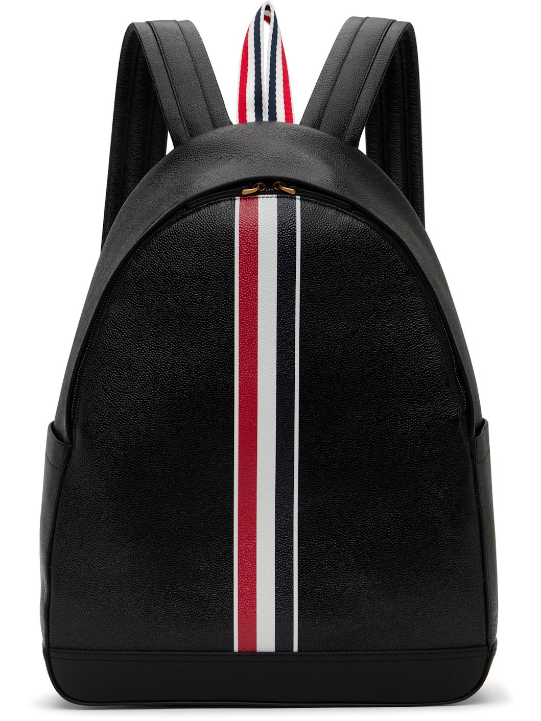 Pebble-grained calfskin backpack in black. · Tricolor webbing carry handle · Adjustable padded shoulder straps · Stripes at face · Patch pocket at sides · Two-way zip closure · Laptop compartment at interior · Grosgrain lining · H16" x W14" x D5.5" Supplier color: Black Calfskin. Made in Italy 252381M166000