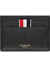 Black Pebble Grain Leather Grosgrain Tab Double Sided Card Holder