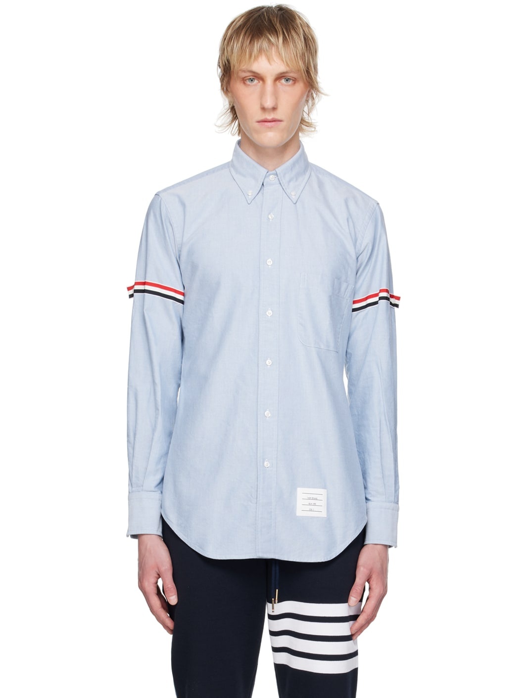 Cotton oxford cloth shirt. · Spread collar · Button closure · Patch pocket at chest · Logo patch at front · Shirttail hem · Adjustable grosgrain button strap at sleeves · Single-button barrel cuffs · Tricolor grosgrain flag at back collar · Mother-of-pearl hardware Supplier color: Light blue 100% cotton. Made in Italy 242381M192017