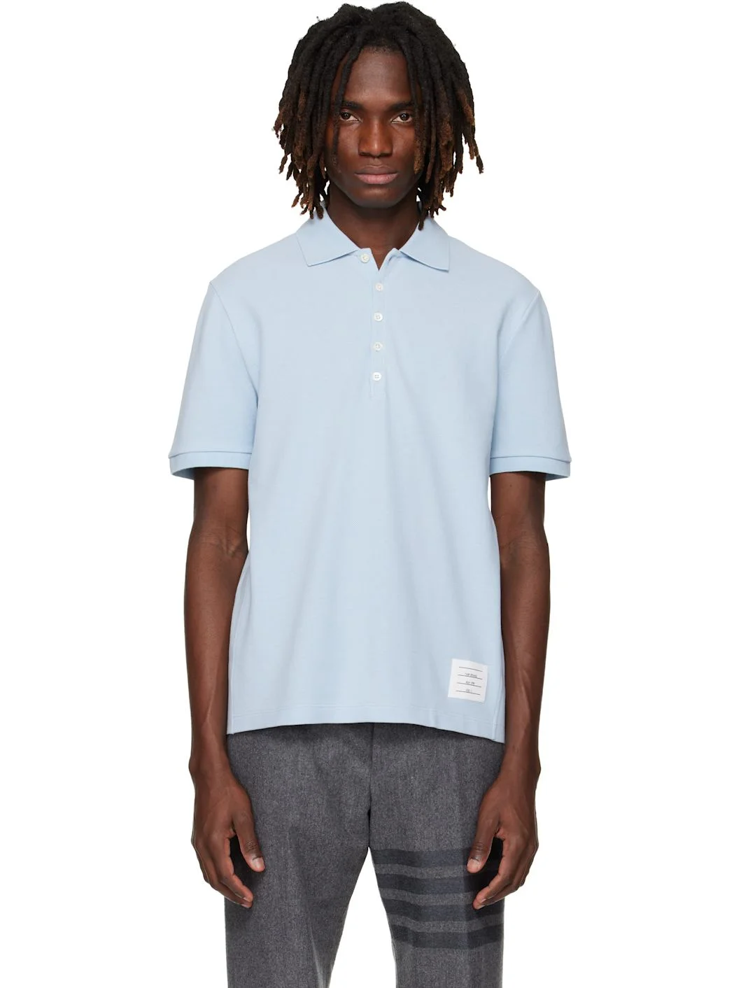 Cotton pique polo. · Rib-knit spread collar, side seams, and cuffs · Five-button placket · Logo patch at front hem · Stripes at side seam · Tricolor grosgrain flag at back collar Supplier color: Light blue Body: 100% cotton. Trim: 98% cotton, 2% elastane. Made in Italy 261381M212009