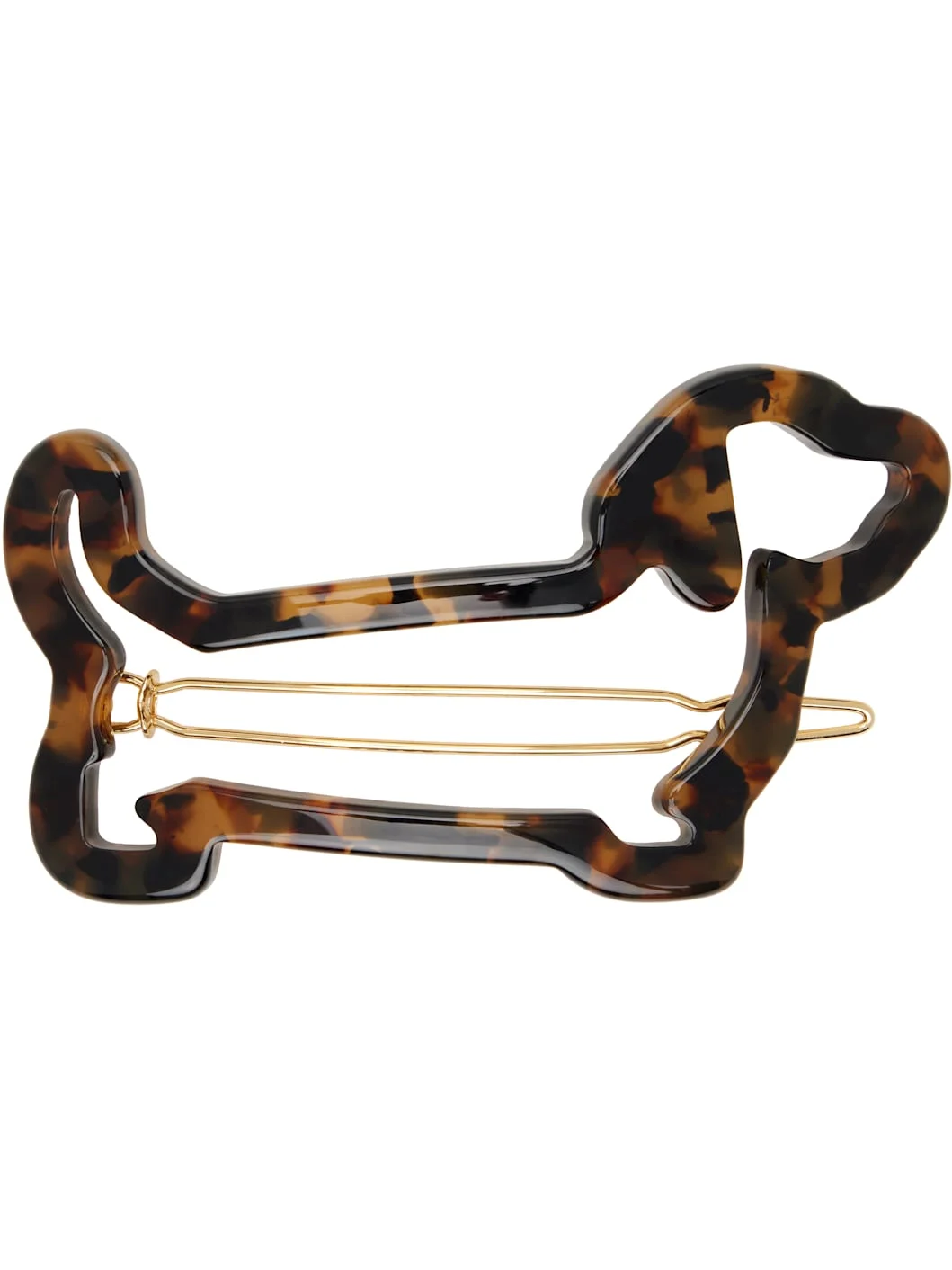 Tortoiseshell acetate hair clip. · Graphic at face · Hinged clasp with rubber combs · H1.5” x W3” Supplier color: Brown 100% acetate. Made in Italy 261381F018001