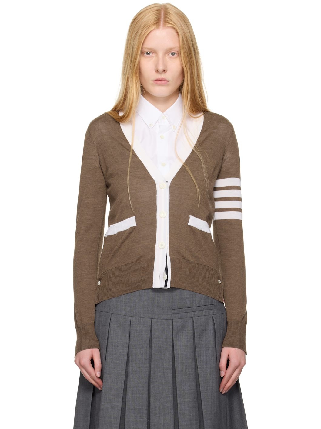 Brown Wool 4-Bar Relaxed-Fit Cardigan