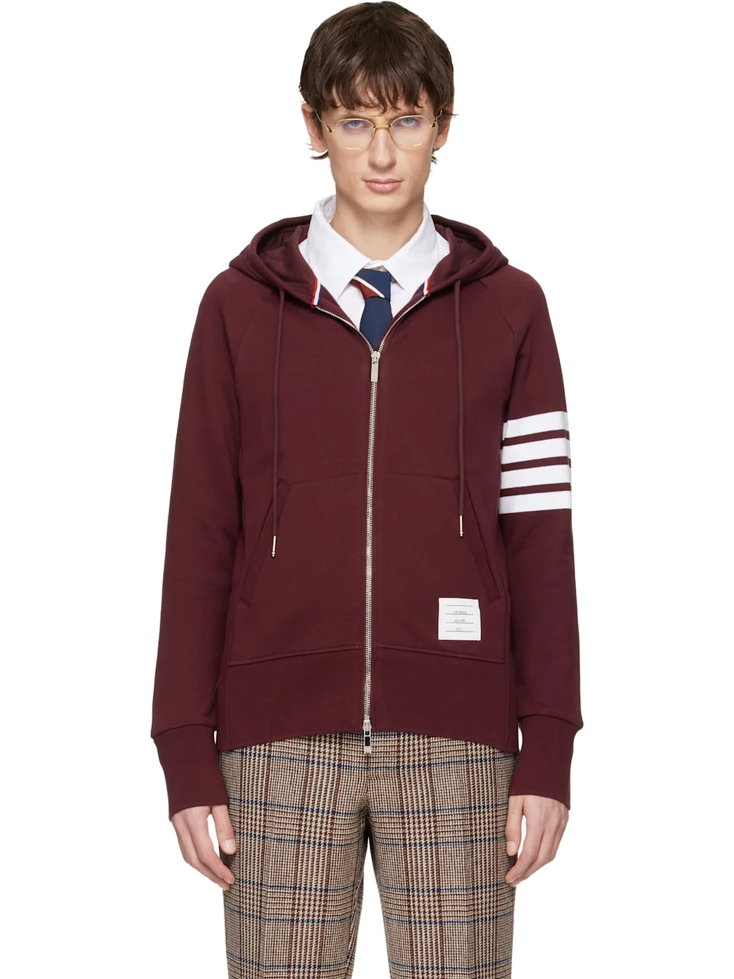 Burgundy Classic Loopback 4-Bar Full Zip Hoodie
