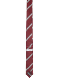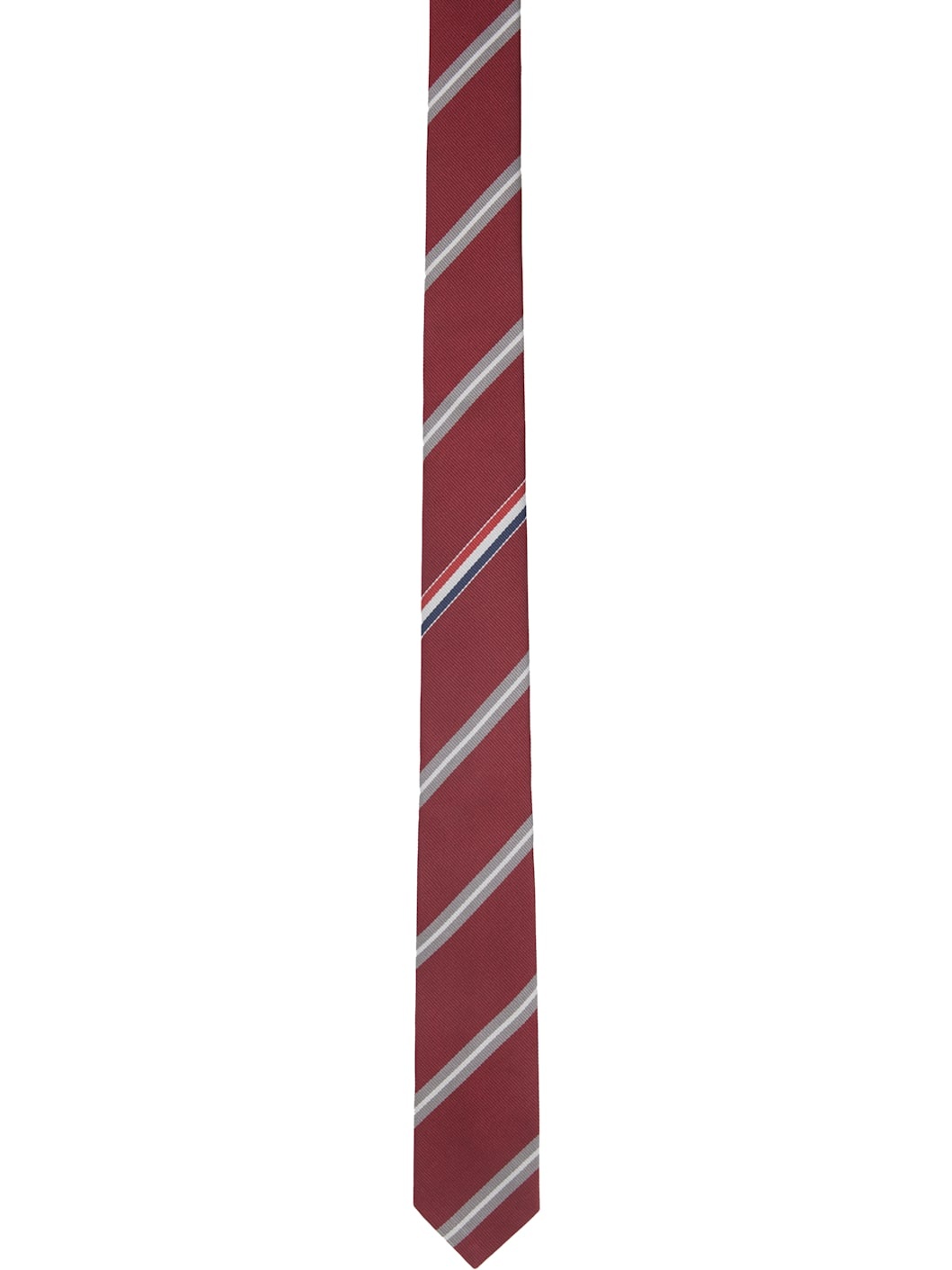 Silk twill tie in burgundy. · Jacquard stripes throughout · Signature tricolor grosgrain trim at face · Keeper loop at back face · W2" Supplier color: Burgundy 100% silk. Made in Italy 252381M158000