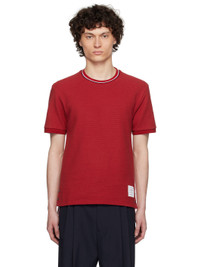 Waffle-knit cotton T-shirt. · Stripes at crewneck · Rib-knit collar and cuffs · Logo patch at front hem · Buttoned vent with concealed tricolor trim at side seams · Tricolor grosgrain flag at back collar Supplier color: Burgundy 100% cotton. Made in Italy 252381M213012