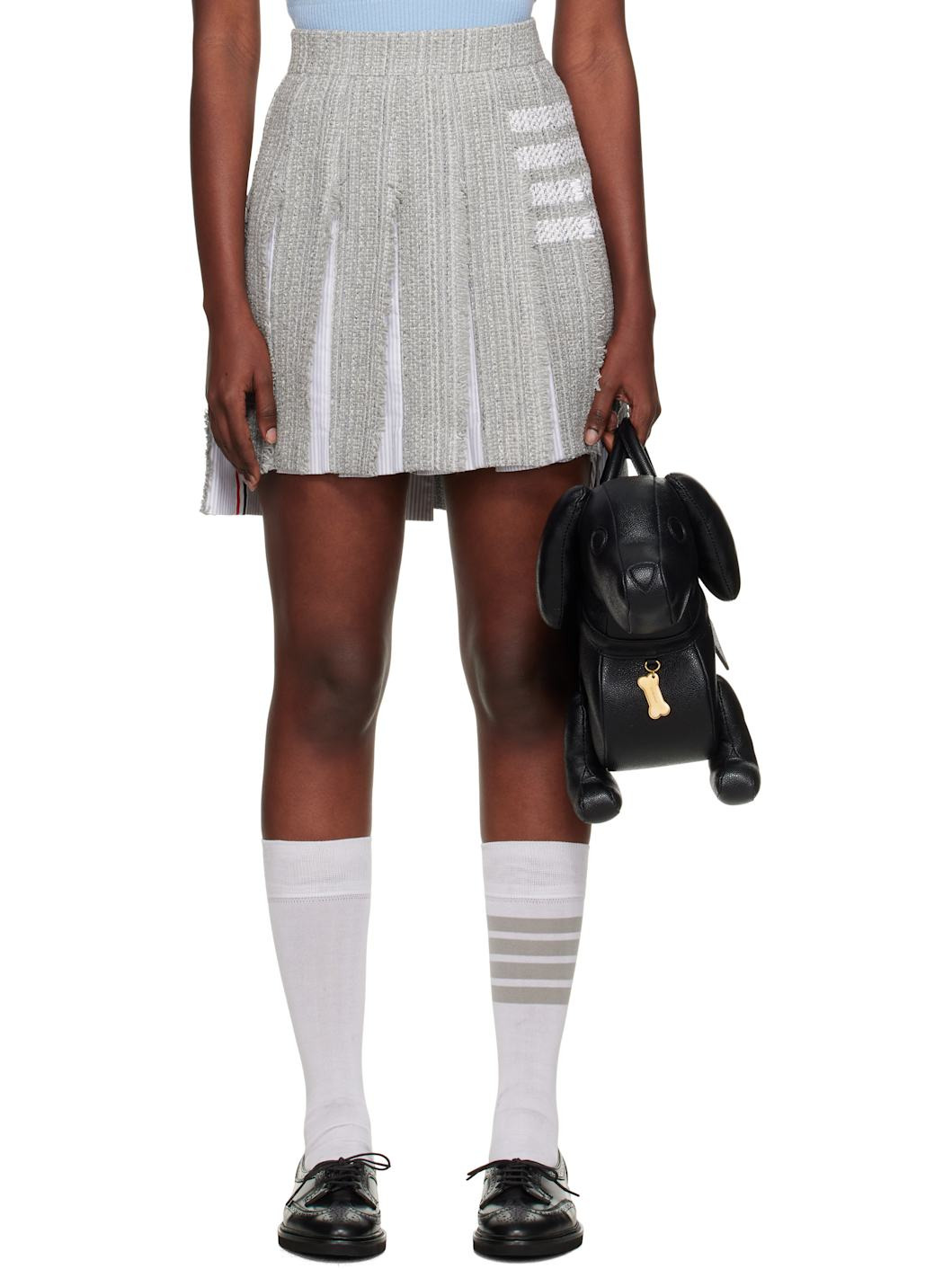 Cotton-blend tweed miniskirt. · Stripes at poplin panels · Pleats and raw edges throughout · Button tab at waistband · Stripes at side seam · Tricolor grosgrain trim at interior · Tricolor grosgrain flag at back waist · Silk crepe lining Supplier color: Med grey Body: 59% cotton, 23% polyester, 8% polyamide, 7% acrylic, 1% viscose, 1% wool, 0.5% acetate, 0.5% alpaca. Lining: 100% silk. Made in Italy 252381F090004