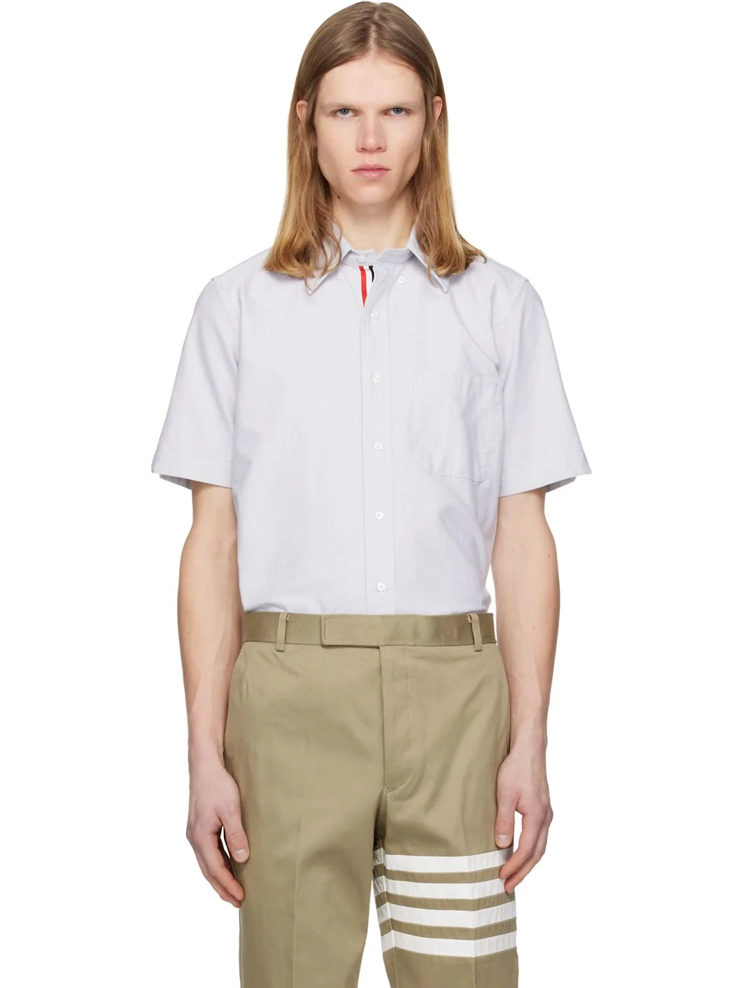 Cotton oxford cloth shirt. · Spread collar · Button closure with tricolor grosgrain placket · Patch pocket at chest · Logo patch at front hem · Shirttail hem · Vent and button detailing at cuff · Tricolor grosgrain flag at back collar · Locker loop at back yoke Supplier color: Med Grey 100% cotton. Made in Italy 261381M192006