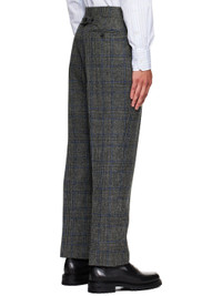 Wool tweed trousers. · Prince of Wales pattern throughout · Four-pocket styling · Button fly · Creased legs · Rolled cuffs · Tricolor grosgrain flag and button strap at back Supplier color: Med grey Body: 100% wool. Trim: 65% polyester, 35% cotton. Lining: 100% cupro. Made in Italy 252381M191007
