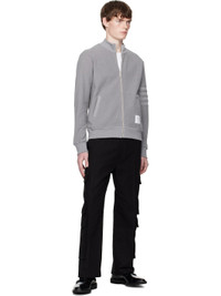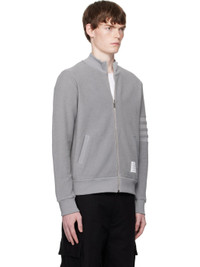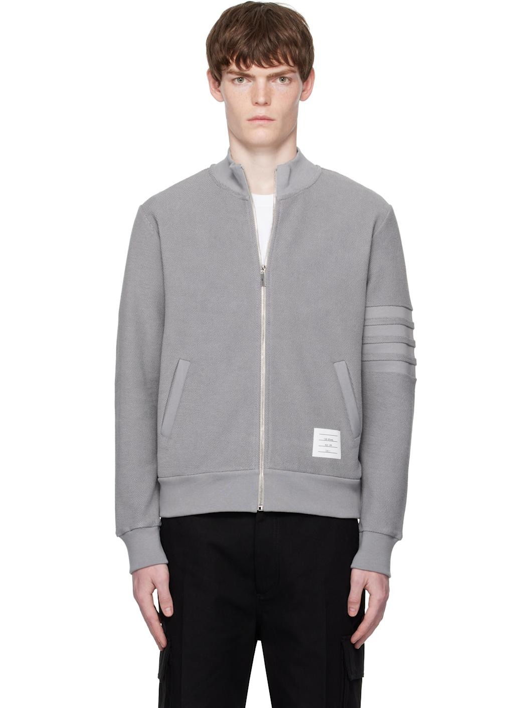 Reverse French terry jacket. · Rib-knit stand collar, hem, and cuffs · Zip closure · Welt pockets at waist · Logo patch at front hem · Jacquard stripes at sleeve · Tricolor grosgrain flag at back collar Supplier color: Lt grey Body: 100% cotton. Trim: 98% cotton, 2% elastane. Made in Italy 252381M202007