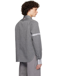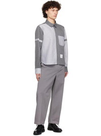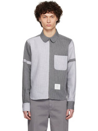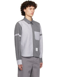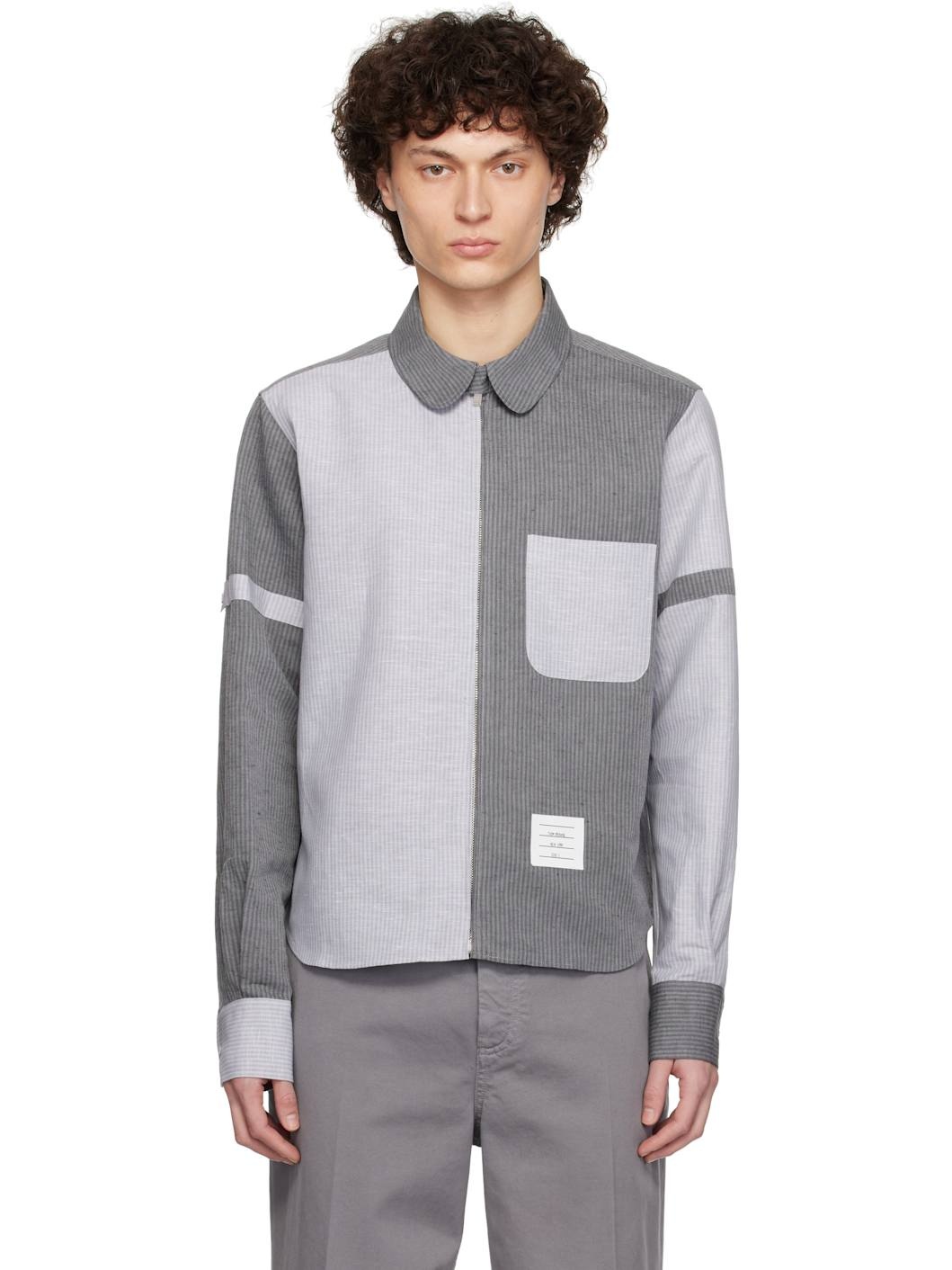 Linen- and cotton-blend canvas shirt. Stripes throughout. · Peter Pan collar · Zip closure · Patch pocket at chest · Logo patch at front hem · Shirttail hem · Adjustable button tab at sleeves · Buttoned barrel cuffs · Tricolor grosgrain flag at back collar · Locker loop and twin pleats at back yoke Supplier color: Lt grey Body 1: 60% linen, 40% cotton. Body 2: 60% linen, 40% cotton. Made in Italy 252381M192008