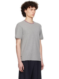 Waffle-knit cotton T-shirt. · Striped rib-knit crewneck · Logo patch at front hem · Button vent with tricolor grosgrain trim at side seams · Rib-knit cuffs · Tricolor grosgrain flag at back collar Supplier color: Lt grey Body: 100% cotton. Trim: 98% cotton, 2% elastane. Made in Italy 252381M213007