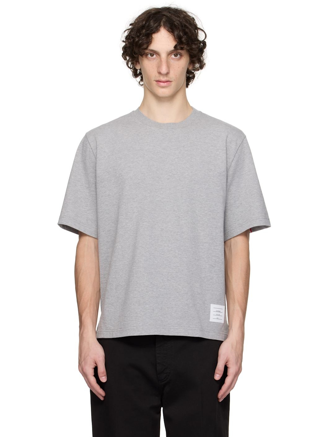 Cotton jersey T-shirt. · Rib-knit crewneck · Logo patch at front hem · Tennis-tail hem · Vented side seams · Tricolor grosgrain trim at side seams and back yoke · Tricolor grosgrain flag at back collar Supplier color: Lt grey 100% cotton. Made in Japan 252381M213016
