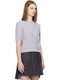 Cotton pique T-shirt. · Rib-knit crewneck, hem, and cuffs · Logo patch at front · Intarsia stripes at sleeve · Tricolor grosgrain flag at back collar Supplier color: Pale grey Body: 100% cotton. Trim: 90% cotton, 10% elastane. Made in Italy 261381F110001
