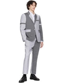 Plain-woven linen- and cotton-blend blazer. Striped throughout. · Paneled construction · Notched lapel · Button closure · Welt pocket at chest · Flap pockets · Adjustable button tab at sleeves · Surgeon's cuffs · Tricolor grosgrain flag at back collar · Twin vents at back hem · Welt pockets at interior · Partial cupro satin lining Supplier color: Lt grey Body: 60% linen, 40% cotton. Lining: 100% cupro. Made in Italy 252381M195003