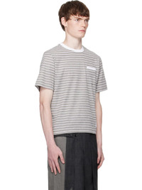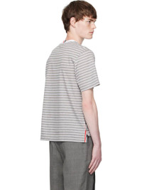 Rib-knit cotton T-shirt. · Stripes throughout · Rib-knit crewneck · Patch pocket at chest · Logo patch at front hem · Button vent at side seams · Tricolor grosgrain flag at back collar Supplier color: Grey/White 100% cotton. Made in Japan 252381M213005