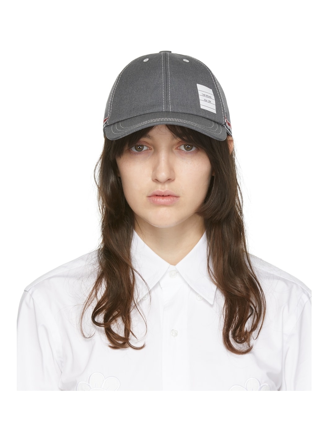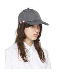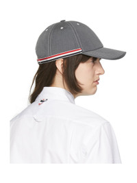 Cotton-blend poplin cap in grey. · Contrast stitching in white · Embroidered eyelet vents at crown · Textile logo patch at face · Curved brim · Signature tricolor grosgrain trim at sides and adjustable cinch strap · Signature tricolor grosgrain lining Supplier color: Medium grey Body: 65% polyester, 35% cotton. Lining: 100% cotton.