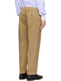 Cotton twill trousers. · Belt loops · Four-pocket styling · Zip fly · Creased legs · Tricolor grosgrain flag at back waistband Supplier color: Camel 100% cotton. Made in Italy 252381M191008