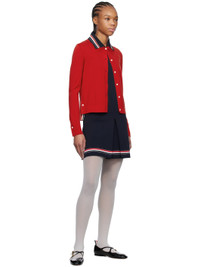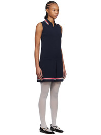 Stretch viscose-blend crepe jersey minidress. · Intarsia stripes at spread collar and hem · Button closure at keyhole neck · Inverted box pleat at front · Rib-knit armscyes · Tricolor grosgrain flag at back collar Supplier color: Navy 80% viscose, 18% polyester, 1% polyamide, 1% elastane. Made in Italy 251381F052000