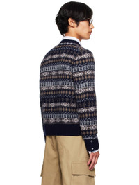 Navy Funmix Fair Aile Jacquard V-Neck Cardigan