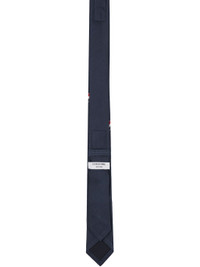Silk twill tie. · Jacquard graphic and tricolor stripes at face · Tricolor grosgrain trim and keeper loop at back face · W2" Supplier color: Navy 100% silk. Made in Italy 252381M158004