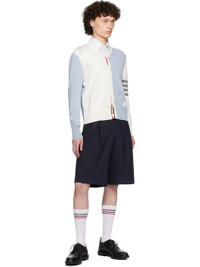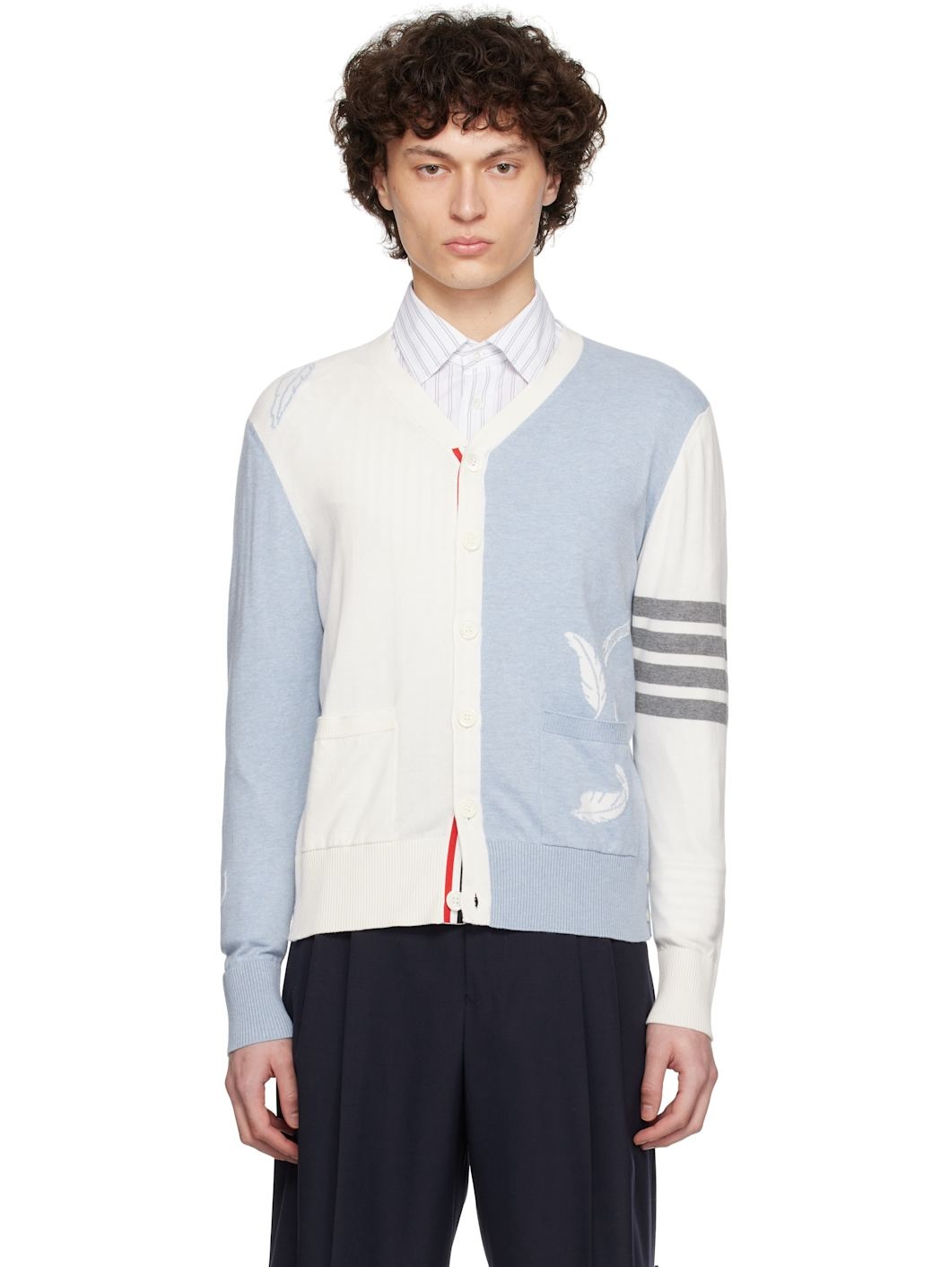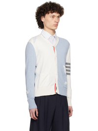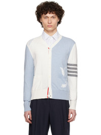 OFf-White & Blue Feather High V-Neck Cardigan