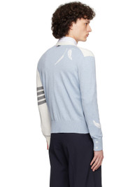 Knit cotton cardigan. Jacquard graphics throughout. · V-neck · Button closure · Tricolor grosgrain trim at placket · Patch pockets · Rib-knit hem and cuffs · Button vent at side seams and cuffs · Intarsia stripes at sleeve · Tricolor grosgrain flag at back collar Supplier color: Lt blue 100% cotton. Made in Italy 252381M200024