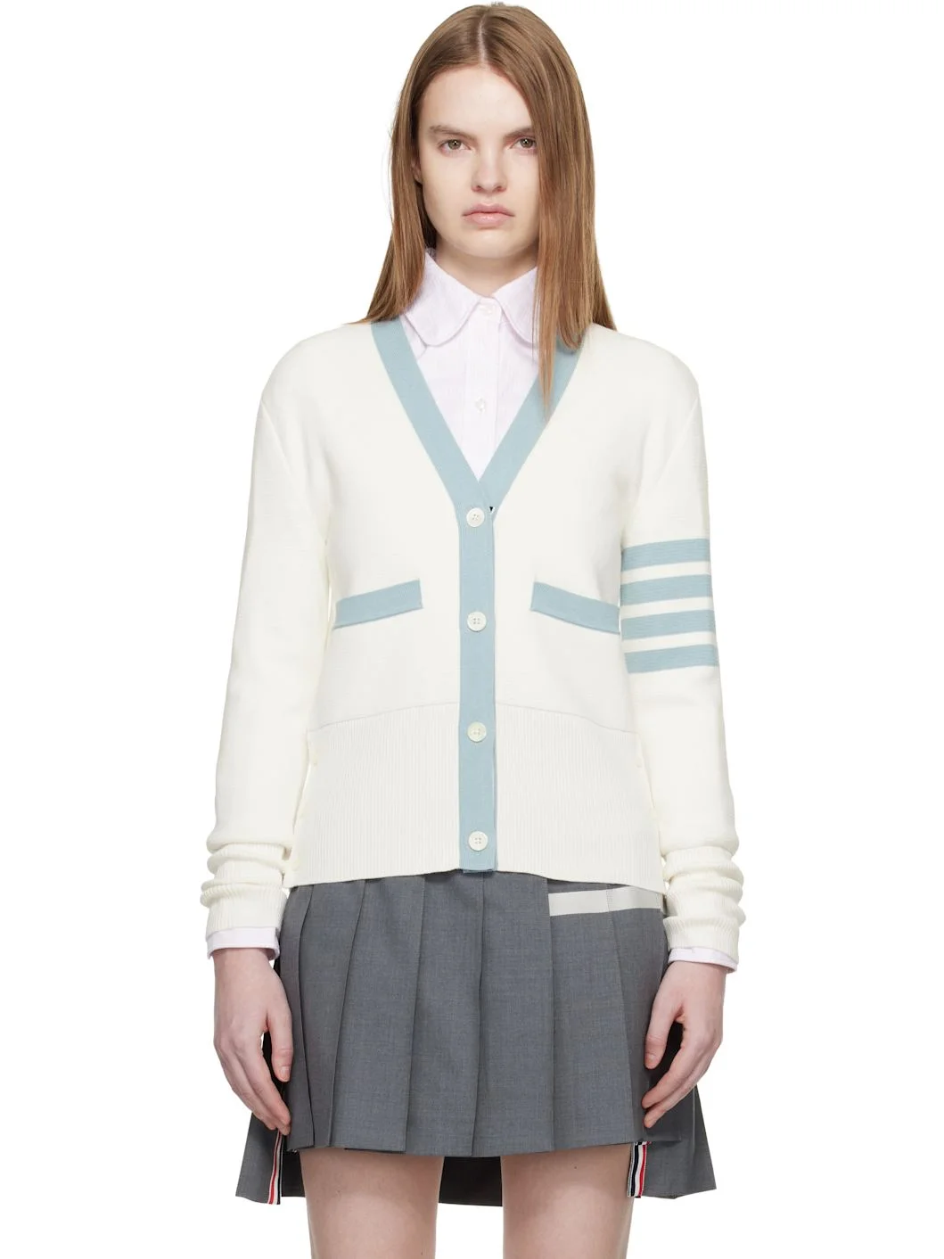 Off-White Milano Stitch Cotton 4-Bar Cardigan