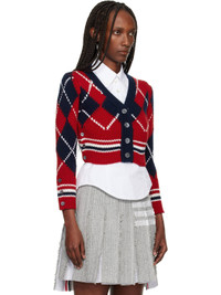 Red Argyle Intarsia Merino Wool Shrunken Cardigan