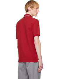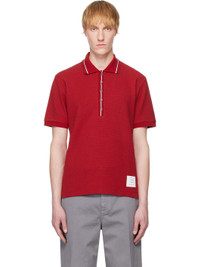 Waffle-knit cotton polo. · Rib-knit spread collar and cuffs · Jacquard tricolor stripes at collar and placket · Five-button placket · Logo patch at front hem · Button fastenings at tennis-tail hem · Tricolor grosgrain flag at back collar Supplier color: Burgundy Body: 100% cotton. Trim: 98% cotton, 2% elastane. Made in Italy 252381M212012