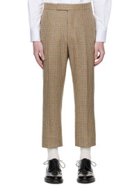 Wool tweed trousers. · Prince of Wales pattern throughout · Four-pocket styling · Zip fly · Creased legs · Adjustable button strap and tricolor grosgrain flag at back · Full cupro satin lining Supplier color: Brown Body: 100% wool. Trim: 65% polyester, 35% cotton. Lining: 100% cupro. Made in Italy 252381M191006
